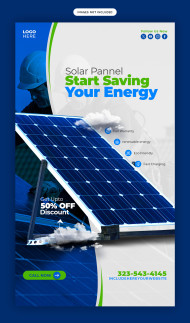 A modern solar energy panel power saving Facebook and Instagram story template design perfect promotions.