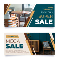 Modern flat furniture sale banners with photo perfect for home decor and interior promotion campaigns.