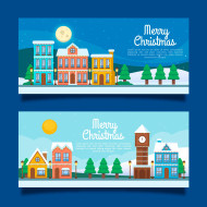 Christmas Town Banners Flat Design | Winter Holiday & Festive Celebration Template