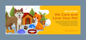 A charming flat design social media cover template for pet sitting and animal care services.