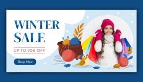 A clean and modern flat horizontal sale banner template perfect for winter season celebrations and holiday promotions.