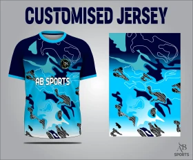 Free elite vector jersey featuring a pelagic camouflage pattern and benthic ripple textures on a deep cobalt gradient for a high-performance athletic look.