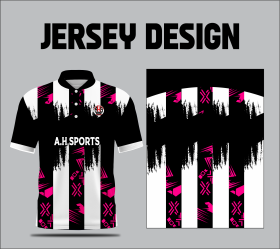 This black and white striped sports jersey vector features a bold, high-contrast layout enhanced with vibrant neon pink graphic accents