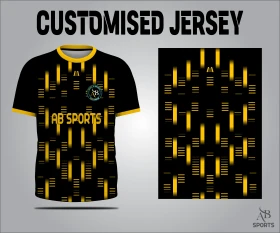 Black and yellow customised sports jersey vector design with abstract pattern and editable uniform layout