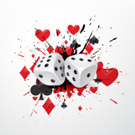 abstract dice background with splatter and playing card symbols